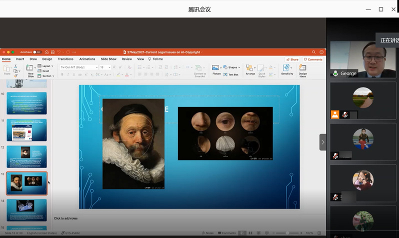 5月27日,澳大利亚悉尼科技大学法学院高级讲师、西华大学知识产权学院、法学院特聘教授田一钧博士通过线上会议的方式为知识产权学院、法学院的师生作了“人工智能与著作权”的专题讲座。学院40余名师生参加了此次讲座。