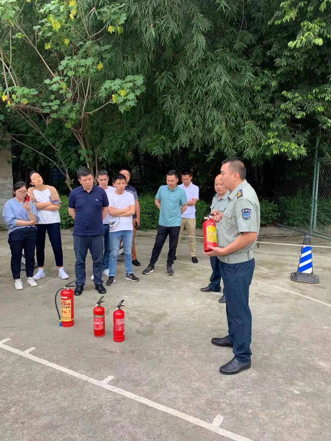 5月19日,人南校区管委会组织入驻校区的部分企业员工进行了消防安全和灭火器使用培训。此次培训工作为参训企业人员讲解了灭火器具的使用方法和注意事项,参加培训人员对灭火器具进行了实际使用操作练习。