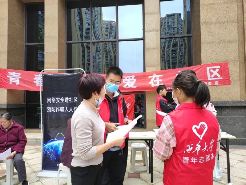10月16日,为加强国家网络安全信息的宣传普及力度,宜宾校区青年志愿者服务队在邦泰社区开展了面向全小区居民的“文明十月,爱在社区”网络安全宣传志愿服务活动。通过悬挂宣传横幅、摆放宣传资料、设立咨询台等多种方式,志愿者们热情地向过往居民宣传网络安全知识并发放宣传品,详细讲解了网络安全的重要性和电信网络诈骗的诸多套路、防范要点以及如何做好个人的信息防护等知识。