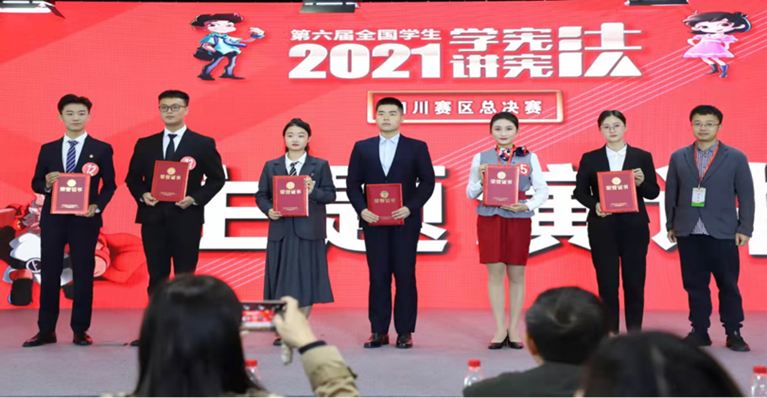 10月17日,法学与社会学学院2019级法学专业学生冯元、何政昱参加第六届学生“学宪法 讲宪法”演讲比赛和法治知识竞赛四川赛区总决赛,并荣获演讲比赛第三名及法治知识竞赛亚军。