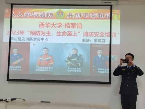 为进一步加强档案安全工作,增强火灾防范意识,提高火灾防控和处置能力,推动档案安全警示教育常态化,12月27日下午,档案馆邀请四川建安消防宣传中心黎教官为我馆全体人员开展消防安全培训。