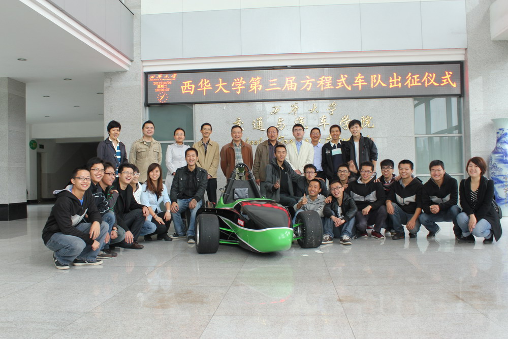 10月9日上午9:40,西华大学方程式车队在五教D区大厅举办了第三届全国大学生方程式汽车大赛车队出征仪式。校团委书记蒋志勇,校团委副书记王唯洁、王博,第三届车队赞助商成都势必得文化传播有限公司代表、成都王中王排气有限公司代表以及Motul中国代表,交通与汽车工程学院主持工作党委副书记周华、主持工作副院长彭忆强、院党委副书记黎青松、黄海波教授以及车队指导老师参加了出征仪式。仪式由学院团委书记龙俊如主持。 合影 |