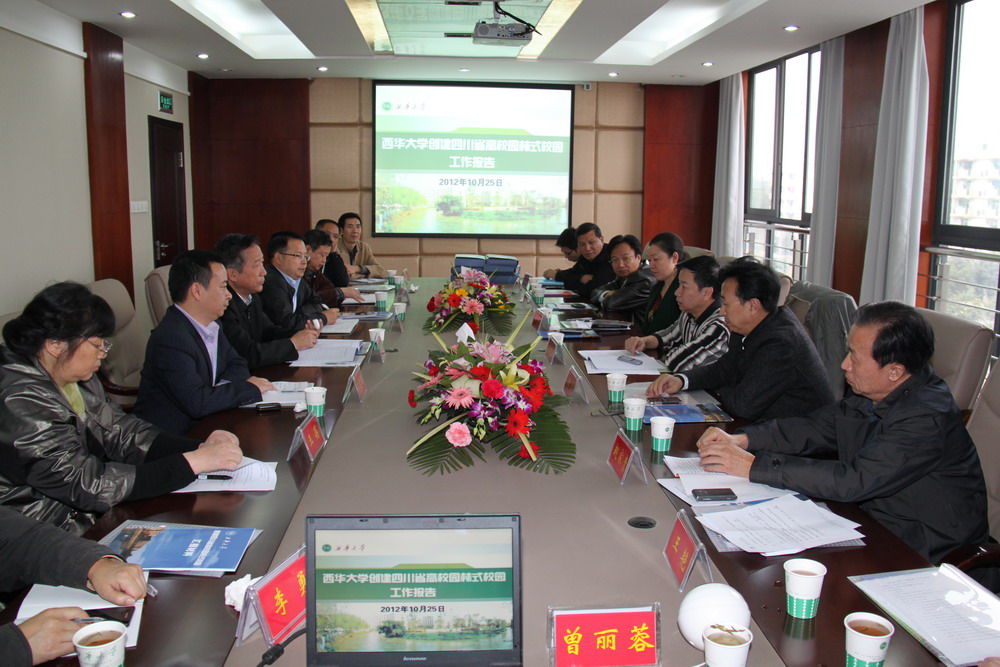 10月25日下午,四川省教育厅学校后勤与产业处副处长胡晓明率队的全省高校园林式校园评估专家组一行莅临我校,对我校创建四川省园林式校园工作进行了正式评估。
