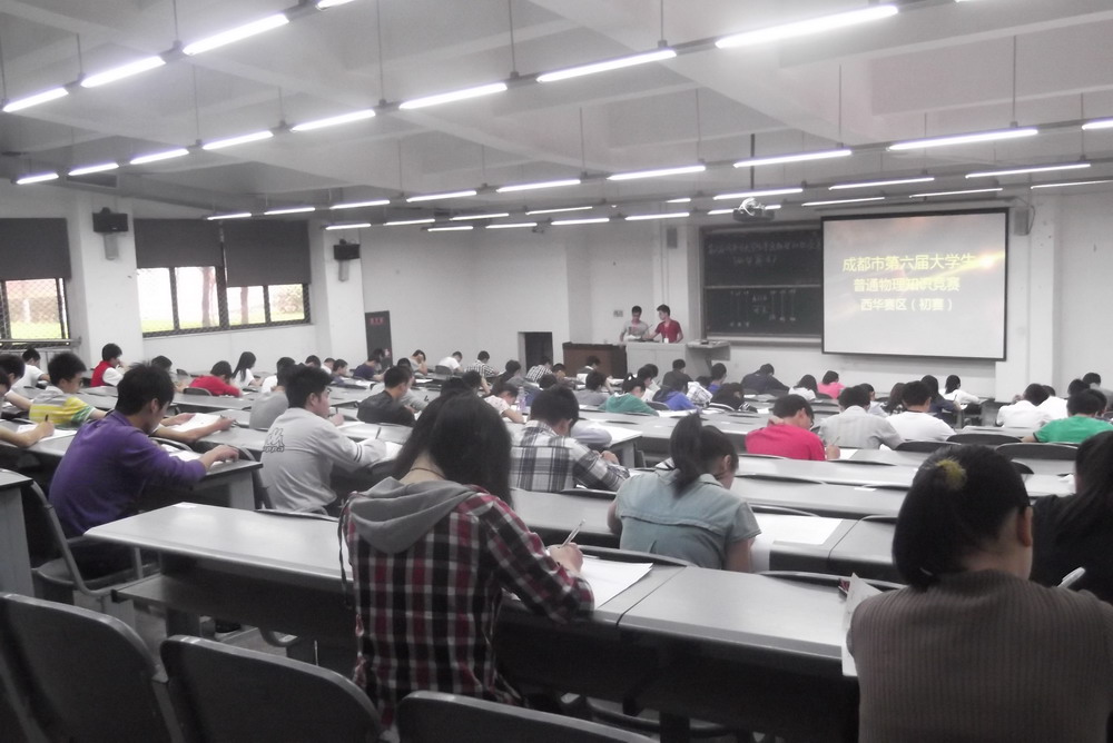5月4日下午2:00,由成都市物理学会主办,成都信息工程学院承办,四川大学、电子科技大学、西华大学等八所高校联合协办的“成都市第六届大学生普通物理知识竞赛”初赛(西华赛区)正式拉开序幕,物理与化学学院主要负责本次比赛在学校的举办工作。 同学们在认真答题 |
