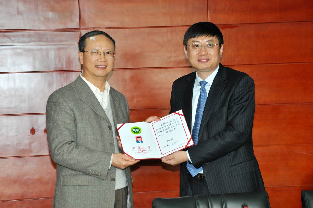 在热烈的掌声中,管欣教授欣然接过聘书,并作了讲话。他说:“受聘西华大学教授和担任交通与汽车工程学院学术委员会主任,我深感荣幸,非常乐意,也非常开心。这是我第一次接受校外聘请作教授和学术委员会主任,今后,作为西华大学的一名教师,我愿意为学校的学科建设积极出谋划策,与学院的教师们一道,加强调研,凝炼特色,力争早日拿出学院学科建设发展改革的新思路、新方案和新举措,做好学校学科建设的试点工作,为学科建设上水平做出贡献。”
