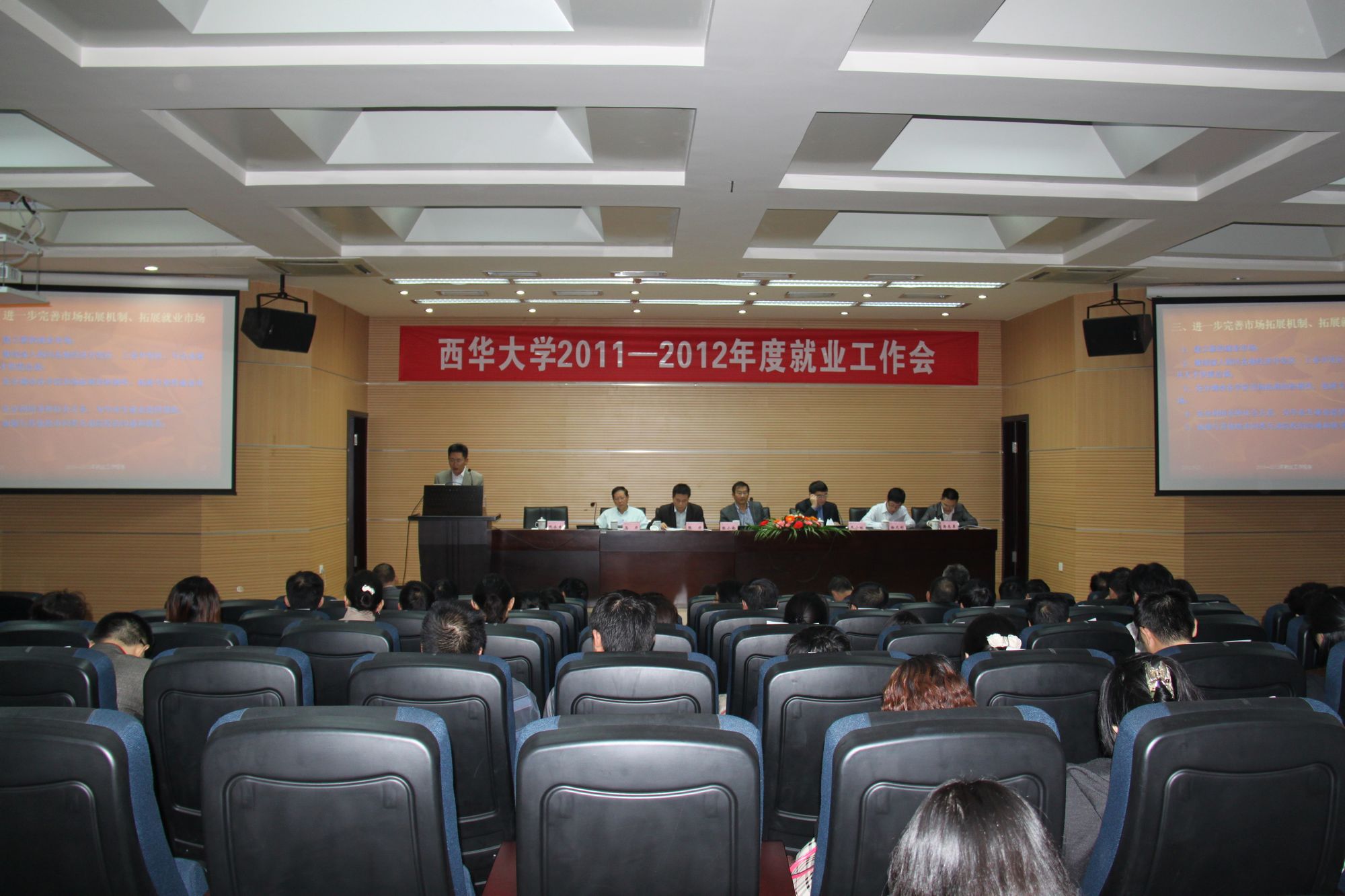 9月21日上午,我校2011至2012年度就业工作会在行政楼一楼报告厅举行。会议对我校近三年来的就业工作进行了总结,对就业工作优秀指导教师、就业工作先进工作者进行了表彰。校党委书记张小南,校党委副书记王小林,校党委宣传部、学生工作部、校团委、教务处、招生与就业处主要负责人,各学院书记或院长、就业工作分管领导、学院就业工作联系人,2013届毕业班辅导员以及受表彰的教师参加了会议。校党委副书记王小林主持会议。 会上,王小林副书记宣读了《关于表彰2011-2012年就业工作优秀指导教师、就业工作先进工作者的决定》。胡志、郑萍、杜德权等21名教师被评为就业工作优秀指导教师,毛正强、毕达平、王莉、郑宇等34名教师被评为就业工作先进工作者。张小南书记、王小林副书记等领导为获奖者颁奖。 招生与就业处处长阮永生对三年来学校面临的宏观就业形势进行了解读,总结回顾了2010至2012年毕业生就业工作,对目前及今后一段时间毕业生就业形势进行了研判,并提出了今后毕业生就业工作的总体思路。 随后,经济与贸易学院党委副书记毛正强、数学与计算机学院党委副书记毕达平、能源与环境学院党委副书记王莉作为就业工作先进工作者代表分别就各自学院开展就业工作的经验同与会者进行了交流。就业工作优秀指导教师代表、管理学院杜德权老师,就业工作先进工作者代表、电气信息学院郑宇老师分别作了交流发言。 张小南书记对近三年来我校就业工作所取得的成绩表示肯定,对获奖教师表示祝贺。张书记说:“看见受表彰的名单之中,有不少一线教师、教授,我深受感动。正因为有这么多普通的教师时刻关心着学生的就业问题,学校的就业工作才年年都上新台阶,充分体现了学校就业工作的全员参与。” 张书记强调,毕业生就业工作是一个全方面、多层面的系统工程,全体教职工都要积极参与,只有这样,这项工作才能做得更好。做好就业工作,不仅能提升学校的声誉,更是对学生负责,对社会负责。 张书记要求,一要继续坚持完善现在卓有成效的就业领导体制和工作机制,领导干部要把就业工作当成一把手工程,坚持不懈地抓。二要采取多种形式,促进学生就业,要加强学生就业指导和服务,增强学生就业能力培养。三要继续深化人才培养机制、体制改革,社会经济发展对人才的要求,从数量和质量来看都在变化,不仅仅是对学生成绩、专业的要求,更对学生个人内在素质有更高的要求。因此,必须认真思考人才培养体系这一系统工作,认真思考如何加强学生的基本素质、就业能力的培养。这既是对学校负责、更是对学生负责。四要进一步完善就业渠道拓展机制,充分发挥学校开放办学精神,“走出去、请进来”,拓展就业渠道。 三年来,我校在毕业生人数逐年增加、就业形势严峻的情况下,就业率依然稳步提高,就业质量稳步提升。从就业率来看,2010年,我校就业达84.7%;2011年达88.49%;2012年达90.53%。从就业质量来看,我校毕业生进入国企、央企、各行业500强等大型企业就业的比例,2009年为21.5%,2010年为21.6%,2011年为25.8%。我校毕业生进入三资、高新优质企业就业的学生比例均有大幅提升。同时,我校毕业生中考研升学、到部队、事业单位等就业比例在近几年都保持在25%左右。据麦可思公司的调查,全国大学生进入此类行业的本科毕业生所占比例为11%。据了解,有很多原来只确定在211、985院校选择毕业生的用人单位也开始来西华大学选才,这充分说明,随着学校近几年人才培养模式的转变,教育教学改革的不断深入,我校学生的专业能力和综合素质越来越受到社会的广泛关注。
