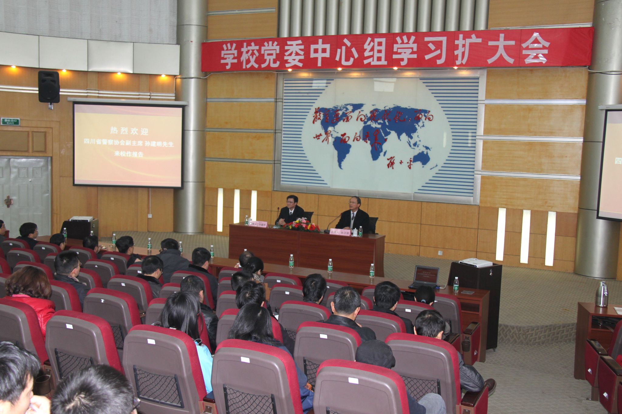 | 3月15日下午,我校党委中心组学习扩大会在四教报告厅举行。四川省警察协会副主席,四川省法学会常务理事,中国公安大学、中国刑警学院、西南政法大学、四川大学客座教授,二级警监,原四川省公安厅刑侦局局长孙建明应邀来校,作了题为“群体事件的预防、处理和危机公关的技巧”的专题报告。全体校领导出席会议。校党委副书记、校长孙卫国主持会议。 报告中,孙建明指出,回顾分析近几年的群体事件发现,群体事件呈现出规模扩大化、主体多元化、行为组织化、情况复杂化以及矛盾尖锐化等特点,起因于利益格局的冲突、诚信危机的出现、社会管控的弱化、法制观念的淡漠和诉求渠道的缺失。孙建明认为针对群体事件首要的是预防,应建立有效的防范机制、敏感的预警机制、高效的处置机制以及完善的保障机制,来减少群体事件的发生。 突发事件涵盖了群体事件、自然灾害、公共卫生事件、社会治安事件和责任事故等。处理突发事件,孙建明建议领导班子快速反应、靠前指挥,做到快发现、快上报、快研判、快处置和快完善;专业部门全力调查、科学定性,通过彻底的调查,从专业角度得出科学结论;相关部门精心救治、及时整改,珍视生命,通过及时整改达到防止次生灾害发生的目的;工作人员讲究策略,找准基点、找准原因、找准对象、找准时机、找准方法。 针对危机公关技巧,孙建明认为我们应该清醒认识到信息传播的广泛性、舆论作用的两面性,在危机公关中把握好三个阶段:初期快报真相、慎报原因,中期有序释放、逐步渗透,后期权威发布、低调处理;坚持三项原则:内容要真实、感情要真挚、态度要真诚;防止三种失误:准备不足、余地不留、反应不快。 孙卫国校长在总结时指出,孙建明先生在报告中结合2009年成都“6•5”公交车燃烧事件调查工作和大量生动鲜活的案例,用深入浅出、诙谐幽默的语言为大家上了生动的一课,将对我校今后危机事件的处理提供很好的借鉴参考。 全体党委常委、校级干部、党委委员、副处及以上中层领导干部,全体专职辅导员,学生工作部、保卫处科级干部到会聆听了报告。