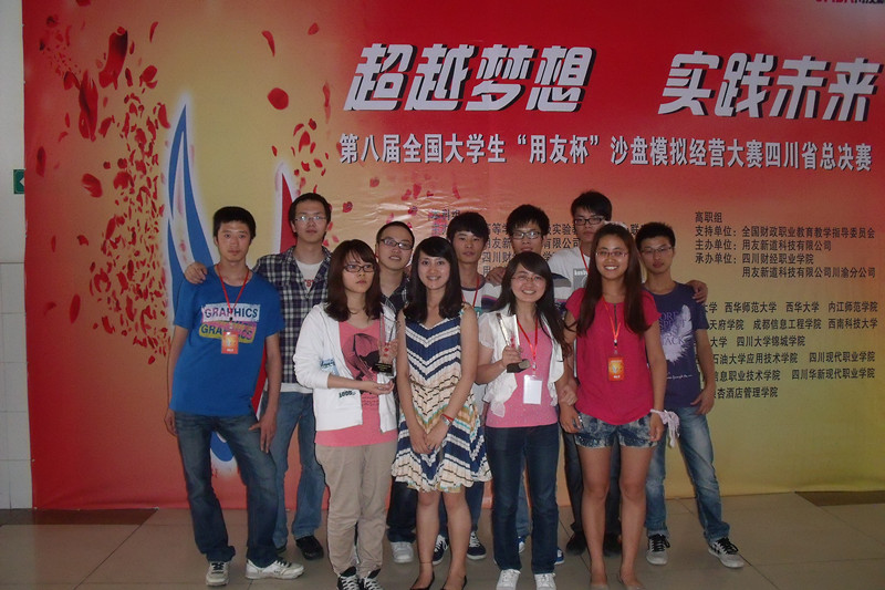 6月10日下午,第八届全国大学生沙盘模拟经营大赛四川赛区总决赛在四川财经职业学院落下帷幕。来自四川省的30所院校共34支代表队展开了为期两天的激烈角逐。我校学生代表队在管理学院党委副书记王相平的带领下,由林庆海、闫家蜜、周为民、王欢、钟欣鑫、豹女狼、黄树栋、黄清蛟、王宇洋、徐忆组成的西华大学一队、二队共两支队伍,参加了比赛并分别以100分和99.7分的优异成绩获得了全国总决赛的入场券。 本次比赛分为“ERP”组和“供应链”组两部分,由“ERP”组和“供应链”组的加权综合排名取前三名晋级全国决赛。“ERP”组共有20支队伍进行比赛,西华大学一队和二队分别获得冠、亚军;“供应链”组共有24支参赛队伍分成A、B两个区进行角逐,西华大学两支队伍分别获得两个分区的第一名。 为了备战本次比赛,管理学院从今年3月开始着手组织校赛。在经历了培训、选拔、强化训练之后,确定了参赛队员,经过一场场训练赛的积淀,每一个队员都有着丰富的比赛经验。赛前,我校参赛选手经过一次次计算、论证、推翻、再计算,如此反复才最终确定比赛方案。在比赛中,凭借着方案的合理性,团队的默契配合,对市场情况的灵活应变,早早领先,并最终以绝对优势包揽了“商战”沙盘的冠亚军,供应链沙盘A、B分区第一名的骄人成绩。至此,我校代表队成功卫冕四川赛区“商战”沙盘的冠军,同时也使得我校从2008年开始连续五年出现在全国总决赛的舞台上。 据悉,全国总决赛将于7月底在广西举行。