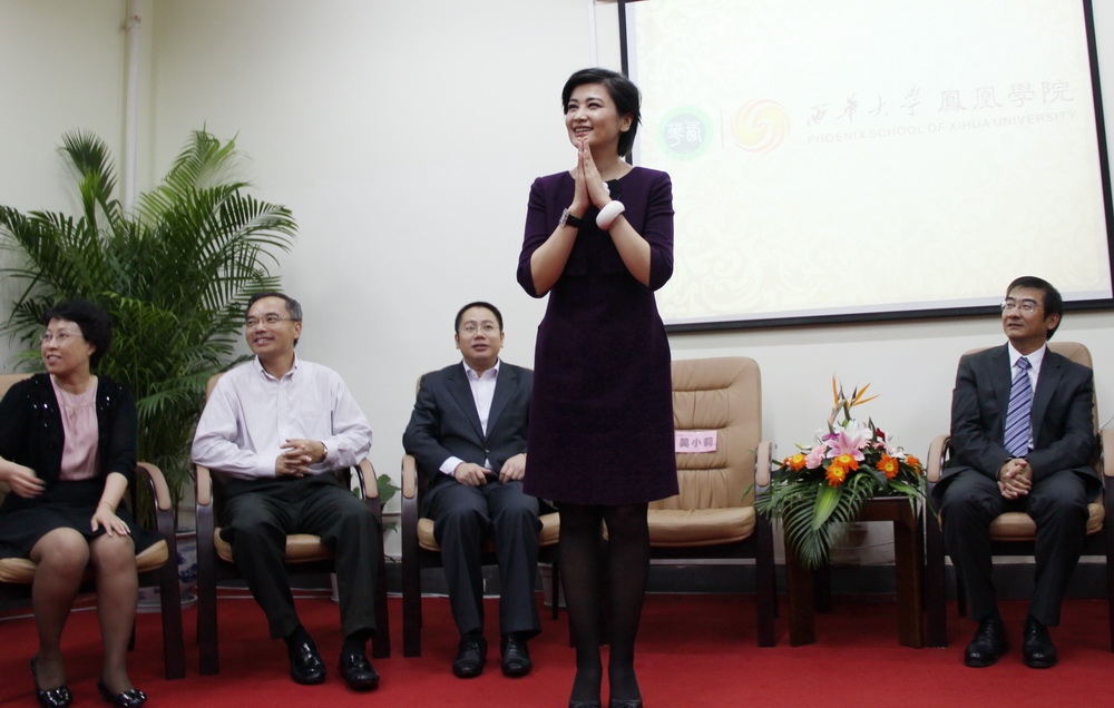 吴小莉女士与凤凰学院学生交流 吴小莉女士发表客座教授感言(一) 吴小莉女士发表客座教授感言(二) 吴小莉女士接受媒体采访 吴小莉女士参加西华秋韵文艺晚会 吴小莉女士为梦想团队颁奖 9月24日下午6:40,香港凤凰卫视资讯台副台长兼首席主播吴小莉来到西华大学,参观了凤凰学院,接受了校长孙卫国为她颁发的客座教授聘书,并与西华大学党委副书记王小林,凤凰教育行政总裁、董事长吴炜强共同为“吴小莉励志奖学金”签约。校党委书记张小南代表学校感谢吴小莉女士光临西华大学并接受学校的聘任,并为吴小莉女士赠送了西华大学精心准备的礼物。之后,吴小莉女士与四川日报、华西都市报、成都商报、四川电视台等10余家媒体记者、学生记者举行了媒体见面会。 各大媒体对此进行了广泛的宣传报道。相关链接如下: 四川电视台新闻资讯频道(SCTV-4)新闻现场:吴小莉来蓉客座教授 设奖学金激励学生 http://202.115.144.65//m.delfiashop.com/movie/xihuashipin/2012-09-27/17589.html 四川电视台科教频道(SCTV-8)教育新闻:西华大学举行第五届西华秋韵文艺晚会 http://202.115.144.65//m.delfiashop.com/movie/xihuashipin/2012-09-27/17588.html 成都电视台(CDTV-1)成视夜新闻:名嘴吴小莉首次担任高校客座教授 http://202.115.144.65//m.delfiashop.com/movie/xihuashipin/2012-09-27/17587.html 《成都商报》:吴小莉受聘西华大学客座教授 《成都晚报》:传媒人的人文情怀: 坚持真心奉献世界 《天府早报》:凤凰卫视主播吴小莉受聘客座教授 遇学子围堵提问 http://media.people.com.cn/n/2012/0925/c40606-19097220.html 《凤凰网》:吴小莉受聘西华大学客座教授并设立“励志奖学金” http://edu.ifeng.com/gaoxiao/detail_2012_09/25/17890924_0.shtml 《四川新闻网》:在西华大学设立励志奖学金 吴小莉受聘客座教授 http://scnews.newssc.org/system/2012/09/24/013633677.shtml 《成都全搜索》:凤凰卫视吴小莉首次当客座教授 西华学子围堵提问 http://news.chengdu.cn/content/2012-09/24/content_1051166.htm?node=1760 《华西手机报》:吴小莉受聘西华大学客座教授 http://e.weibo.com/hxsjb 《新华网》:凤凰卫视主播吴小莉受聘客座教授 遇学子围堵提问 http://news.xinhuanet.com/newmedia/2012-09/25/c_131871340.htm 《新华网重庆频道》:吴小莉受聘西华大学客座教授并设“励志奖学金” http://www.cq.xinhuanet.com/2012-09/26/c_113209544_2.htm 《人民网》:凤凰卫视主播吴小莉受聘客座教授 遇学子围堵提问 http://media.people.com.cn/n/2012/0925/c40606-19097220.html 《光明网》:凤凰卫视主播吴小莉受聘客座教授 遇学子围堵提问 http://www.gmw.cn/media/2012-09/25/content_5197228.htm 《搜狐》:凤凰卫视著名主播吴小莉首次来川做客座教授 《搜狐》:在西华大学设立励志奖学金 吴小莉受聘客座教授 《四川在线》:凤凰卫视著名主播吴小莉首次来川做客座教授 http://sichuan.scol.com.cn/fffy/content/2012-09/24/content_4118695.htm?node=894 《新浪四川》:吴小莉受聘西华大学客座教授 遇学子围堵提问 http://sc.sina.com.cn/edu/info/gaokao/2012-09-25/090523896.html 《中国网》:在西华大学设立励志奖学金 吴小莉受聘客座教授 http://news.china.com.cn/live/2012-09/24/content_16368537.htm 《新民网》:在西华大学设立励志奖学金 吴小莉受聘客座教授 《和讯网》:首次当客座教授设立“吴小莉励志奖学金” 《中国记协网》:凤凰卫视主播吴小莉受聘客座教授 遇学子围堵提问 http://news.xinhuanet.com/zgjx/2012-09/25/c_131871340.htm 《华禹教育网》:吴小莉受聘西华大学客座教授 http://www.huaue.com/news/201292581027.htm 《东莞时间网》:凤凰卫视著名主播吴小莉首次来川做客座教授 http://news.timedg.com/2012-09/24/content_12266347.htm |