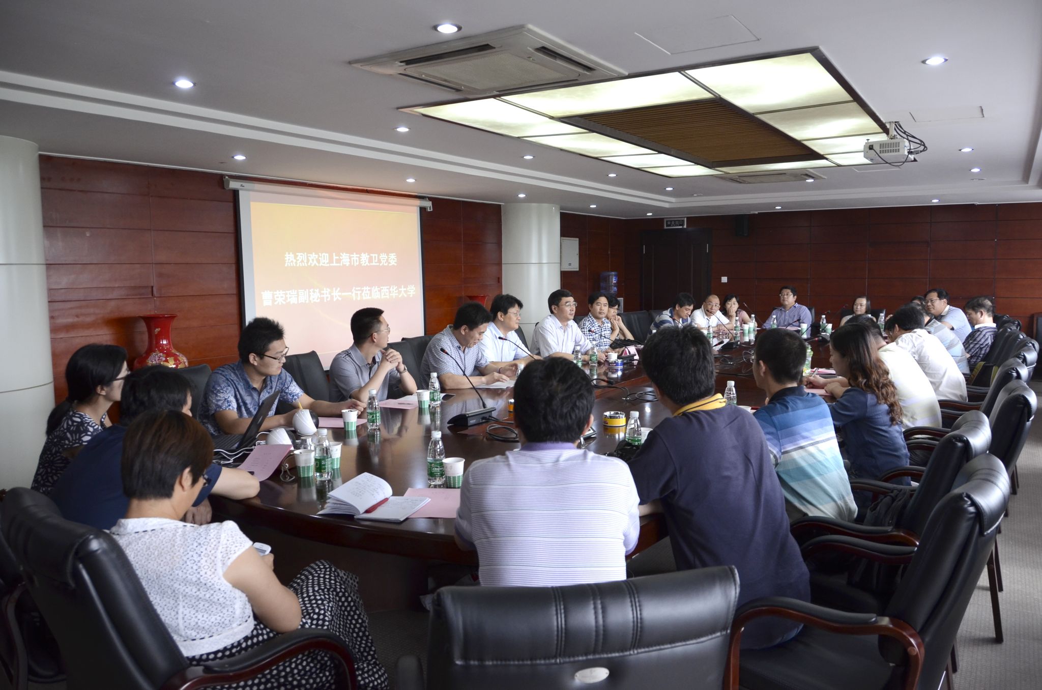 | 7月15日下午3:00,来自复旦大学、同济大学、上海社科院等20所高校和科研院所的上海市哲学社会科学教学科研骨干研修班一行37人,在研修班团长、上海市教卫党委副秘书长曹荣瑞,领队、上海市科教党校主任科员项影的带领下,来我校考察调研。校党委副书记王小林,党委宣传部、校团委相关负责人,人文学院副院长潘殊闲、经济与贸易学院于代松参加了座谈交流。 校党委副书记王小林代表学校对来宾表示热烈欢迎,并简要介绍了我校历史沿革、教学科研、学生工作、招生就业等方面的基本情况,并希望能与上海高校加强合作,互通有无。上海市教卫党委副秘书长曹荣瑞感谢学校的热情接待,并介绍了上海市哲学社会科学教学科研骨干研修班的基本情况。 上海市哲学社会科学教学科研骨干研修班是上海市委宣传部、上海市教卫党委和上海市教委共同主办的,针对上海市具有副高以上职称的哲学社会科学教学科研及管理人员和高校党委宣传部、学(研)工部、校团委、思想政治理论课教学科研机构负责人举办的研修班。今年共有700名来自上海高校、科研院所的哲学社会科学教学科研骨干参加了研修班。研修班分成若干团队,分赴全国各地进行考察调研,本次来我校调研的团队是该研修班人数最多的一个团队。 根据研修班团长、上海市教卫党委副秘书长曹荣瑞的要求,我校人文学院副院长潘殊闲教授、经济与贸易学院于代松教授分别就成都地方文化保护、成都区域经济建设情况给研修班学员作了介绍。在互动交流发言中,研修班学员踊跃发言,气氛热烈,与我校教师就共同关心的哲学社会科学问题进行了广泛的交流、讨论。学员们纷纷表示,在观看我校宣传片,听取潘教授、于教授的情况介绍后,对成都地方文化和经济社会发展有了深刻的认识。
