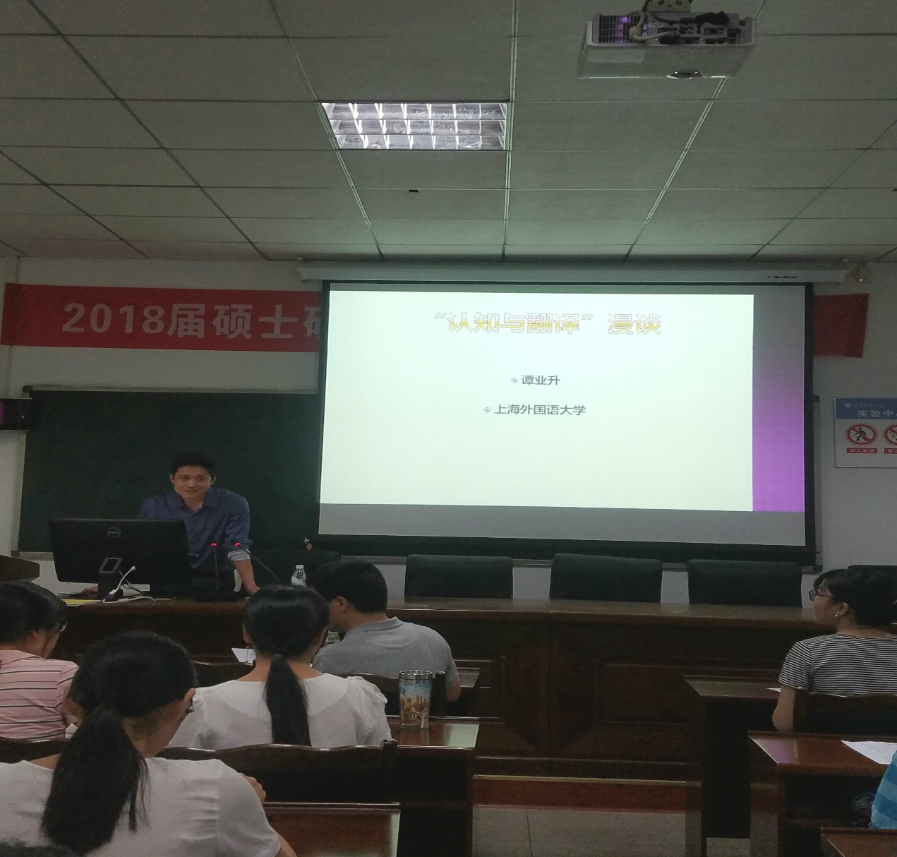 67日下午3:00,上海外国语大学教授、博士生导师谭业升受邀来到西华大学外国语学院,在4B-111教室为广大师生带来了一场主题为“认知与翻译”漫谈的精彩讲座。