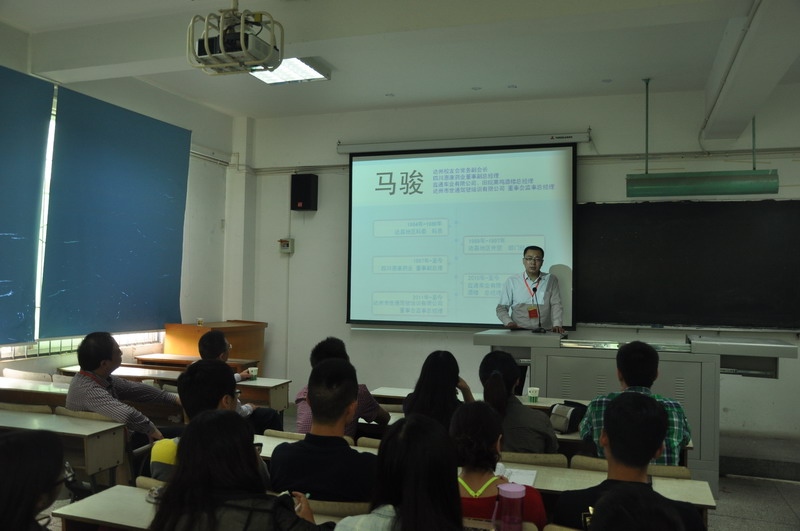 活动中,校友马骏丝毫没有商业大佬的架势,他热情洋溢地与同学们互动,风趣幽默地讲述了自己青葱的大学生活,诙谐的语言和滑稽的动作逗得同学们哈哈大笑。其后,他又深入浅出地讲到自己下海经商的艰辛经历。困难也好,逆境也罢,他都希望同学们能够坚持自己的梦想并为之奋斗。第二位与同学们分享自己学习和职业生涯的是原四川工业学院95级校友蒋伟林,他首先指出能力大小并不重要,关键是品质不能败坏。他告诫同学们首先得学会做人,方能成事。最后,他以马英九的家训“黄金非宝书为宝,万事皆空善不空”结束了谈话。