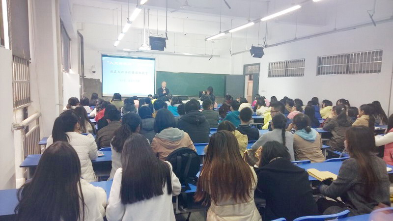 | 为加强汉语国际教育专业学子对自身学习目标与就业方向的了解,人文学院于11月27日下午3:00,在学院微格教室(6A-126)举办以“欧美文化与汉语国际教育”为主题的“人文新视野”学术讲坛。主讲人为国际合作与交流处前任处长张家川、现任处长罗擘,2013级辅导员晏乔与13级、14级汉语国际教育专业全体学生参加本次讲坛,主持人为院长谢应光。 在一个简短的聘请仪式——人文学院院长谢应光聘请张家川、罗擘两位老师担任学院指导老师后,本次讲坛正式开始。首先,张家川围绕“出国留学”的话题与同学们展开交流。期间,他不断强调学好外语的重要性,并引用邓小平“教育要面向现代化,面向世界,面向未来”鼓励大家要打开眼界,走出国门,积累经验。接着,张老师结合自身经历,讲述中外文化差异,建议同学们应深入了解别国文化,在差异中相互理解,取得进步。 随后,罗擘发表讲话,他在鼓励大家攻读本专业硕士的同时,提出赴海外担任汉语国际教育老师为本专业的重点就业方向。与此同时,想要成功就业则可通过参与“汉办选拔”与“我校与对汉语教师有需求的海外合作院校交流活动”等方式实现。此外,罗老师还通过讲述参与“汉办选拔”的过程与要求及展示各类留学项目,提醒同学们要珍惜时光,努力提高自身能力。