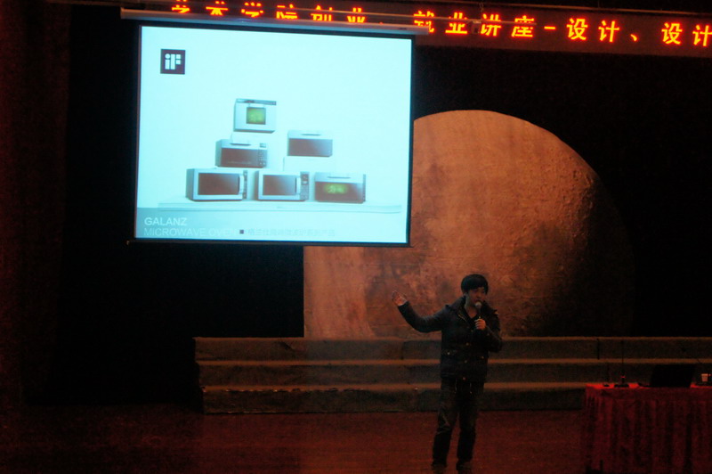 12月30日下午2点30分,由艺术学院校友魏长文主讲的“设计,设计师”创业就业主题讲座在艺术大楼C区音乐厅举行。学院党委副书记、副院长曾贤,学工办主任裴西宏出席了此次讲座,2011级设计专业学生聆听了讲座。