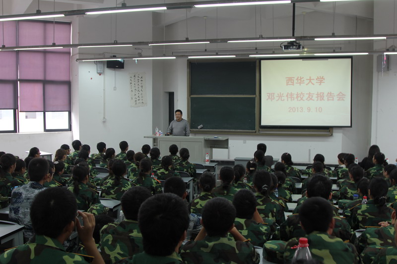 9月10日上午,由电气信息学院组织的邓光伟校友励志报告会在6B304顺利举行。学院党委副书记周川,辅导员刘秀丽及2013级新生代表参加了本次报告会。