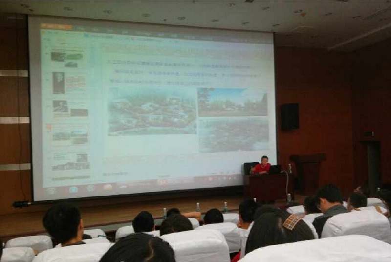 5月29日14:40,建筑与土木工程学院在新图书馆报告厅召开学术讲座。特邀四川省大卫建筑设计有限公司(国家甲级) 董事长刘卫兵老师开展了题为“川西林盘聚落保护与更新”的学术报告。学院党委副书记熊华、副院长王泽云、团委书记韩晶晶和感兴趣的本科生参加了本次讲座。报告会由副院长王泽云主持。
