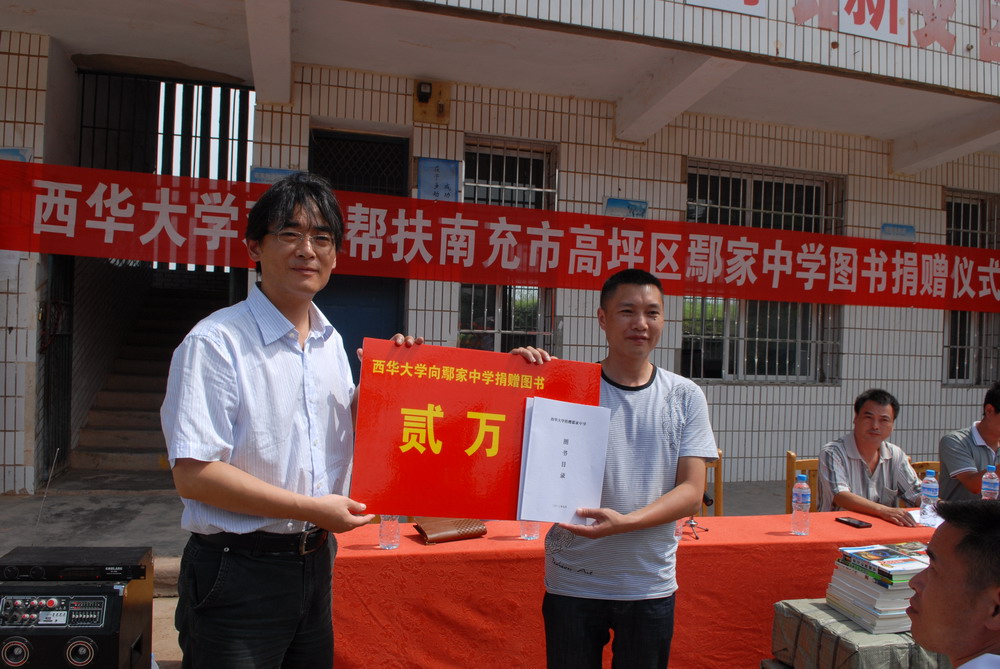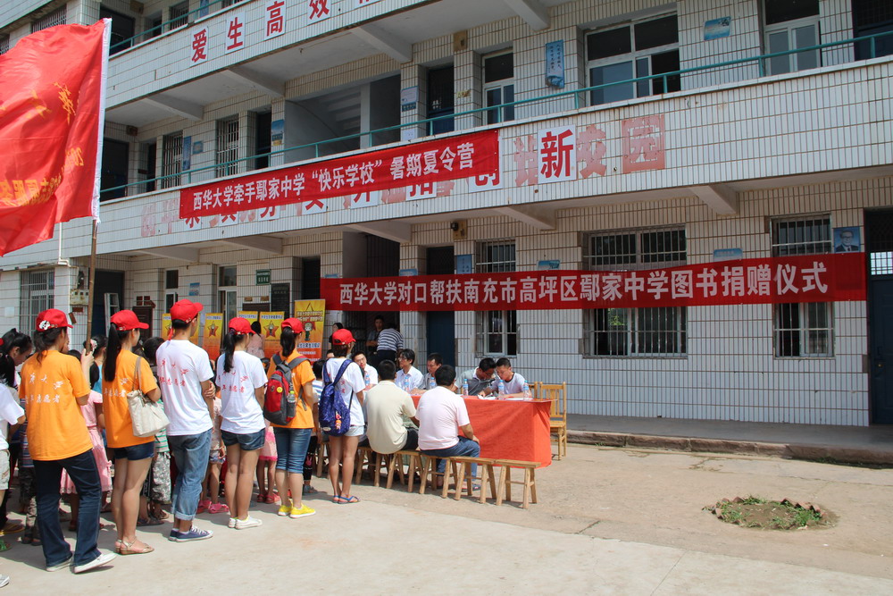 为全面贯彻落实“中共四川省委办公厅、四川省人民政府办公厅关于做好2012-2015年对口定点扶贫工作的通知”(川委办[2012]12号)要求,学校领导高度重视,经过前期多次实地考察、对接,学校召开常委会,听取副校长蔡汉军对我校对口定点扶贫南充市高坪区开展扶贫工作的思路和设想介绍,讨论通过按照“智力扶贫”的思路,结合暑期“三下乡”社会实践活动、校地项目合作等方式开展扶贫工作。 6月21日,学校成立了由蔡汉军副校长任组长,校长办公室主任费凌为副组长,校工会、校团委、校长办公室、科技处、地方合作与服务处为成员单位的“西华大学对口定点扶贫工作领导小组”, 统筹组织对南充市高坪区的对口定点扶贫工作。 7月2日一大早,西华大学对口捐赠南充市高坪区鄢家乡鄢家中学的价值两万余元的约860本图书就整齐地摆放在了鄢家中学的操场上。此举标志着我校对南充市高坪区对口定点扶贫工作已正式启动。 学校党委常委、校长办公室主任、对口定点扶贫工作领导小组副组长费凌出席了捐赠仪式,并代表学校向鄢家中学捐赠了图书。管理学院、生物工程学院的有关专家在当地领导的陪同下,认真了解并实地察看了鄢家乡的经济规划和特色农作物种植情况。下一步,学校将继续加强对鄢家中学图书室的建设,并协助当地进行区域经济规划,对口进行智力支持。 当天,学校的暑期“三下乡”社会实践服务队也正式开始了西华大学牵手鄢家中学“快乐学校”暑期夏令营活动,鄢家中学的学生们积极参与夏令营的各项活动。 校团委书记蒋志勇、校长办公室副主任杨志松、高坪区扶贫和移民工作局以及高坪区鄢家乡的领导等共同参加了捐赠仪式。 四川新闻网、南充日报等媒体作了相关报道。