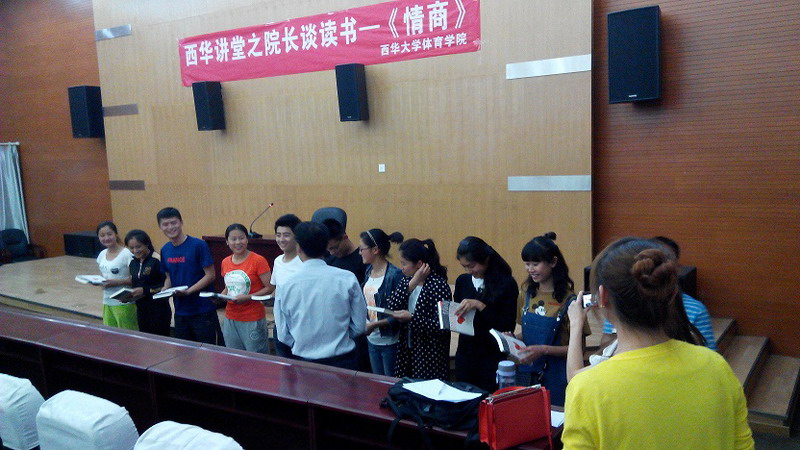 开讲之前首先进行了赠书仪式,胡志院长对各年级优秀同学代表赠与丹尼尔·戈尔曼所著的《情商》。接着胡志院长由新东方创始人俞敏洪的事迹引出今天的主题“情商”,高情商人的特点有:能力较广泛、有雄心、有效率、热爱社交、乐观外向、乐于助人、善于奉献、有很强的责任感、亲和力强等。 胡志院长希望大家的观念从现在开始转变为从重“智商”到重“情商”。他阐述了推荐《情商》的10个理由,其中几个重要理由是:不懂情商的人是不健全的、情商高是一种最基本的生存能力、情商占取得事业成功中的大部分因素、情商能够教会大家如何培养人际关系,自我调节能力等。最后,胡志院长总结了情商的概念,就是管理情绪的能力。