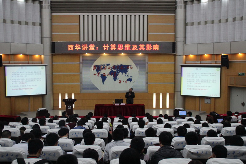 11月11日晚7:00,由数学与计算机学院院长何明星主讲的“计算思维及其影响”讲座在四教报告厅举行。本期西华讲堂由数学与计算机学院承办,来自全校的300余名师生参加了讲座。讲座由数学与计算机学院团委书记郭聪主持。