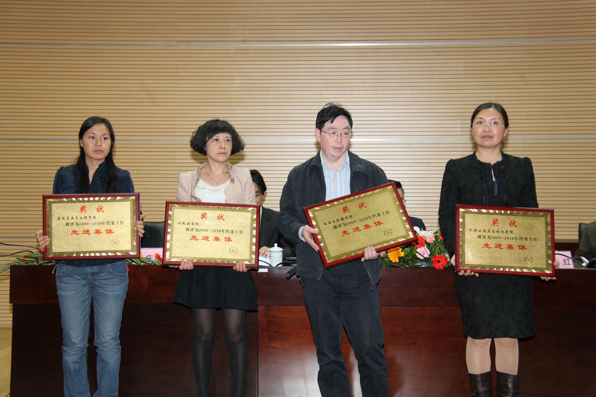 4月16日下午,我校2012年档案工作暨先进表彰会在行政楼一楼报告厅举行。四川省档案局经济科技档案业务指导处处长林红,学校档案工作委员会副主任、副校长蔡汉军,全校各单位档案工作分管领导及专兼职档案员参加了会议。校长办公室主任、档案馆馆长费凌主持会议。 本次大会的主题是:全面总结学校贯彻落实教育部、国家档案局联合颁布的教育部27号令,即《普通高等学校档案管理办法》等情况,安排部署2012年学校档案工作,表彰2009—2010年度学校档案工作先进集体和个人。 会上,档案馆副馆长朱庆华对我校近年来贯彻落实第27号令的有关情况进行了介绍。档案馆副馆长岳猛宣读了《西华大学关于表彰2009—2010年度档案工作先进集体和先进个人的通知》。校党委宣传部(新闻中心)、学生工作部(处)、校长办公室等10个单位获先进集体称号,刘敏、夏文光、程三三等40位专兼职档案员获先进个人称号。 随后,先进集体代表、党委宣传部(新闻中心)副部长山述兰,先进个人代表、图书馆兼职档案员刘敏分别就档案工作的管理问题进行了经验介绍。 林红处长代表四川省档案局对我校档案工作所取得的成绩表示肯定。他谈到,西华大学的档案工作全面贯彻落实了27号令和《四川省高等学校档案管理办理实施细则》的精神,始终把握“基础工作规范化、队伍建设专业化、服务工作人性化、档案建设信息化、库房管理制度化”的工作目标,取得了卓有成效的成绩,学校档案工作已走在了全省高校的前列。 蔡汉军副校长对专兼职档案员的辛勤工作表示感谢,对获得先进称号的集体和个人表示祝贺。同时,他强调,档案关乎过去、现在和未来,过去的档案是今天的财富,今天的档案是明天的财富,也是认识和把握事物发展规律的钥匙,是维护历史真实面貌的重要事业,功在当代、利在千秋。希望各单位都要认识到档案工作的重要性,进一步加强档案管理工作,加强档案资源建设;希望各位专兼职档案工作者继续发扬坚守平凡、创造非凡的敬业精神,为学校的发展做出更大的贡献。 会场 先进集体领奖 先进个人领奖附:2009—2010年度档案工作先进集体和先进个人名单 一、先进集体: 宣传部(新闻中心) 学生工作部(处) 校长办公室 教务处(高等教育研究中心) 人事处 计划财务处 建筑与土木工程学院 机械工程与自动化学院 能源与环境学院 管理学院 二、先进个人(按姓氏笔画排序) 王相平 王 红 邓 英 兰 虹 司 健 孙仁云 孙晓璐 刘传辉 刘 敏 刘小兵 李 蓝 李 辉 李 红 吴 燕 吴莉萍 但文莉 何太碧 张永莉 张 燕 肖 玲 邱 健 陈 利 陈 芸 陈 华 陈 建 宋竹娟 青 树 周 宏 单红梅 明 红 罗程静 夏文光 袁永俊 龚巧漫 曹焜纯 程三三 傅 楠 彭 怡 蒲华庆 蔡美娇