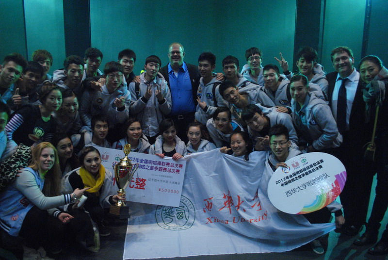 12月14日至17日,2012年全国啦啦操联赛总决赛在常州嬉戏谷动漫会展博览中心和常州嬉戏谷大剧院举行。来自全国155所大中小学、体育协会、业余体校、健身俱乐部及少年宫的172支代表队,共3327名运动员在123个项目中进行角逐,优胜队伍将组建“中国啦啦操队”参加明年4月在美国奥兰多举行的啦啦操世界锦标赛。 西华大学啦啦操队在何建平副校长、体育学院党委书记肖旭、张讴教练、钟敏及刘翊军老师的带领下,在本次大赛中过关斩将,齐心协力,克服重重困难,取得佳绩,再展西华风采。 在15日下午进行的啦啦操选拔赛上,西华啦啦操舞蹈队以令人耳目一新的爵士成套、花球成套、街舞成套,高分夺得爵士四级难度组第一名、花球四级难度组第一名、街舞六级难度组第一名;西华啦啦操技巧队也以团队的协作精神和热情打动现场评委及观众,获得技巧四级难度组第二名的佳绩。两支队伍均顺利取得2013年赴美参赛资格。 16日下午进行的无级别组精英挑战赛中,西华啦啦操队再次面临来自全国顶尖队伍的挑战。在激烈的竞争和巨大的挑战下,西华啦啦操队的每一位队员,用长期以来刻苦训练培养的良好应战能力,所向披靡,向国际裁判长、裁判员展示出了最华美的舞蹈,受到场下观众一致肯定和高度评价,并成功获得由国家体育总局颁发的“舞蹈年度总冠军”。 在这次参赛过程中,有两名队员因赛前热身意外受伤,使队伍比赛成套的完整性一度陷入担忧状态,但两名队员以大局为重,忍痛继续参加高强度的赛事,这正体现了知难而进、自强不息的西华精神。 在本次大赛结束时,西华啦啦操队的舞蹈《花样年华》给在场海内外嘉宾留了深刻印象。就像舞蹈本身所展示的,在最美的年华里,西华啦啦操队会不断地追寻,为了明天的美好,为了做最好的自己。 在学校领导、老师和同学们的支持鼓励下,西华啦啦操队再次获得好成绩,他们在舞台上绽放出最闪耀的青春,在前行的道路上走出最铿锵的步伐。在接下来的时间里,西华啦啦操队将进行更紧张的集训,为开年后的世锦赛做最充分的准备,争取为学校再创佳绩。 西华啦啦操队的舞蹈《花样年华》视频链接:http://v.youku.com/v_show/id_XNDg5OTkyNjQ0.html
