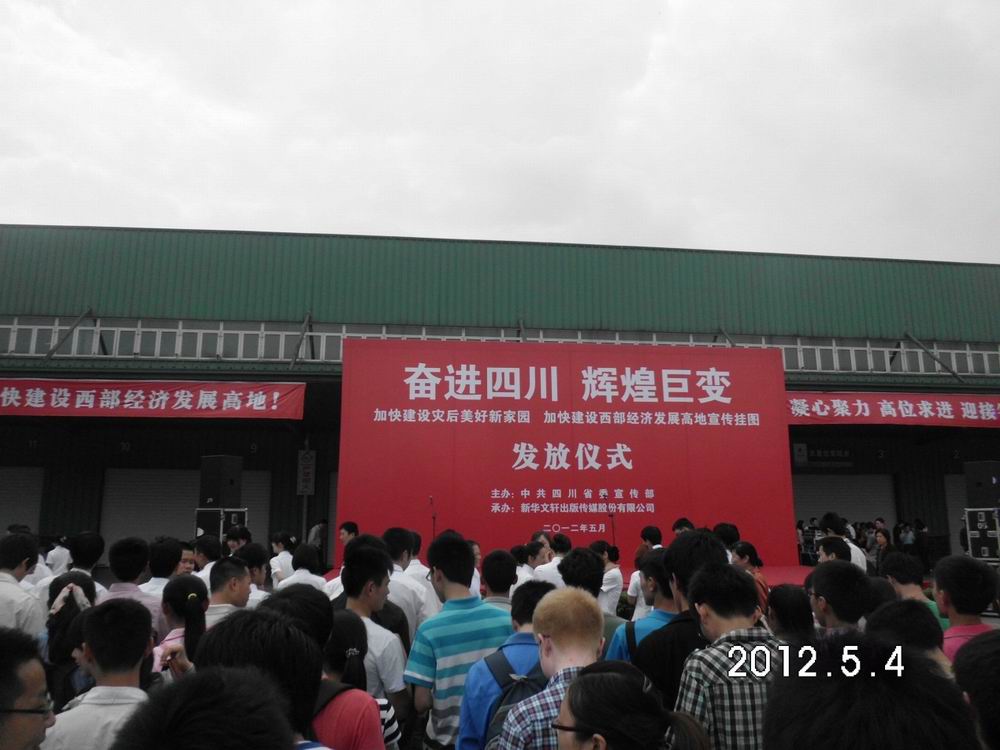 由四川省委宣传部主办、新华文轩出版传媒股份有限公司承办的“奋进四川  辉煌巨变——加快建设灾后美好新家园,加快建设西部经济发展高地”挂图首发仪式于5月4日在成都隆重举行,我校80名勤工助学岗位学生作为高校学生代表应邀观展。