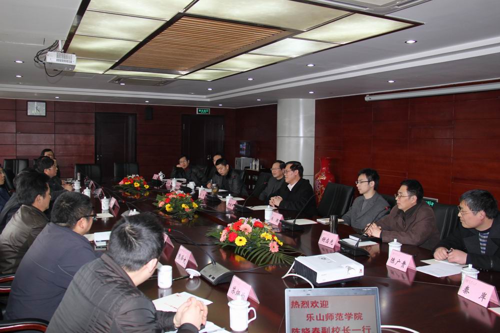 3月15日下午,乐山师范学院副校长陈晓春带领教务处、物理与电子工程学院、化学与生命科学学院、文学与新闻学院、美术学院、计算机科学学院等单位负责人一行到我校考察交流。我校副校长何建平,教务处、物资设备与实验室管理处、物理与化学学院、生物工程学院、人文学院、艺术学院、数学与计算机学院等院部负责人参加了座谈。