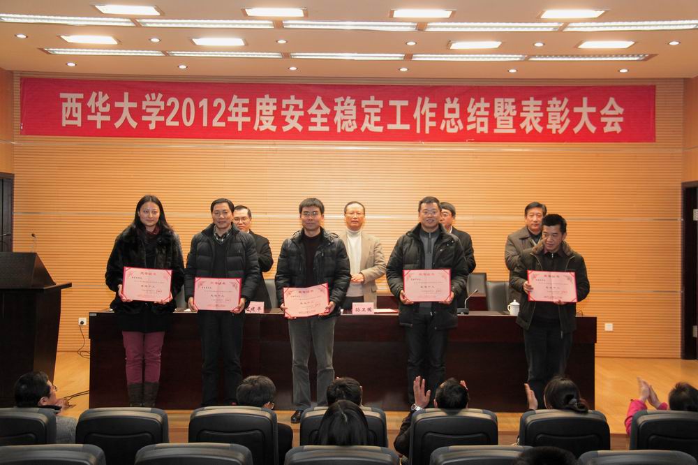 1月16日下午,我校在行政楼一楼报告厅举行了2012年学校安全稳定工作总结暨表彰大会,回顾总结2012年度校园安全稳定工作,部署学校近一段时间的安全稳定工作,表彰一批维护校园安全稳定先进集体和先进个人。校长孙卫国,校党委副书记王小林,副校长何建平、乔哲青、王政书,机关职能部门、业务部门、人南校区管委会负责人,各学院党政主要负责人,受表彰的先进集体代表和先进个人出席会议。会议由副校长王政书主持。 会上,校党委副书记王小林作2012年学校安全稳定工作报告。他在报告中对学校过去一年中取得的成绩与存在的问题作了全面回顾和总结,并对做好寒假及春节期间的学校安全稳定工作进行了部署。 王小林副书记指出,学校高度重视安全稳定工作,一年来,学校全面落实中央和省市有关部门关于维护稳定的各项决策部署,按照构建“平安校园、和谐校园”的目标,以“以人为本,安全第一”为理念,不断增强责任意识,进一步健全组织机构,完善安全稳定工作运行机制,以落实隐患排查整改为抓手,不断强化安全教育宣传,营造了安全稳定工作群防群治工作格局,各学院、各部门协调配合,恪尽职守,全力以赴,抓稳定、保安全、促发展,为党的十八大胜利召开创造了安全稳定的校园环境,学校安全稳定工作取得了可喜的成绩。2012年,学校实现了无重大群体性事件、无重大安全责任事件、无影响学校和社会稳定事件,未发生校园交通安全事故、食品中毒事件、学生伤害致死事件,无失密泄密事件发生、无火灾、无涉毒案件等事件发生,为学校营造了平安、稳定、和谐的校园环境,确保了正常的教学、科研、工作和生活秩序,保证了校园安全稳定,受到上级主管部门的好评与表彰。在总结工作、肯定成绩的同时,王小林副书记指出了学校安全稳定工作存在的不足和问题,剖析了原因,并就今后一段时期的校园安全稳定工作作了安排部署。 在会上,乔哲青副校长宣读了《西华大学关于表彰2012年度安全稳定工作先进集体、先进个人的决定》(西华委发〔2013〕4号),应用技术学院等9个单位获“2012年度安全稳定工作先进集体”称号,党国华等32名教职工获“2012年度安全稳定工作先进个人”称号。在主席台就座的学校领导为获得2012年度安全稳定工作先进集体和先进个人颁了奖。 随后,应用技术学院院长杨燕翔作为获奖单位代表、后勤服务总公司副总经理李勇作为先进个人代表分别在会上作了发言,介绍了各自单位的安全稳定工作具体做法和采取的主要措施。 最后,孙校长作大会总结讲话。他指出,2012年,学校在安全稳定工作中处置得当、工作得力,一年中学校没有重大的火灾案件、恶性刑事事件、重大安全事故的发生,确保了各项工作的顺利开展。对下一步学校的安全稳定工作,孙校长提出了三点要求:一要牢固树立“安全稳定工作无小事”和“稳定压倒一切”的意识,全员抓稳定,全员抓安全,不能有丝毫的松懈;二要进一步完善机制,明确责任,关注小事,狠抓落实。进一步树立服务意识,关切师生合理诉求,注意工作方式方法;三要做好应急方案的制定与演练,全面提升学校应对突发事件的处置能力。希望全校师生向先进集体及个人学习,高度重视学校的安全稳定工作,努力把学校的安全稳定工作做得更好。
