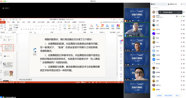 7月11日下午,美术与设计学院动画一流专业建设之专家论坛第5讲成功举办,华东师范大学聂欣如教授应邀以“动画与舞蹈”为题举办动画学术论文撰写讲座。讲座由美术与设计学院党委书记屈立丰主持,院长孟凯宁,副院长黄静、张玉萍,动画专业、视觉传达设计专业教师代表,设计学硕士点动画与数字媒体艺术方向研究生及其他高校师生共100余人参加了本次线上讲座。
