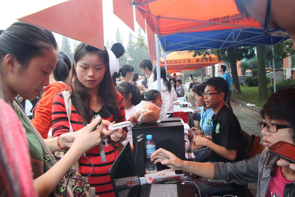 自上学期大学生社区网——西华大学易班建设正式启动以来,易班已逐步成为同学们学习、交流、分享信息和资源的平台。9月23日,易班手机客户端发布暨西华大学易班学生工作站招新在明德广场正式启动。 易班工作站招新现场 同学们在易班工作站指导下安装易班手机客户端 |
