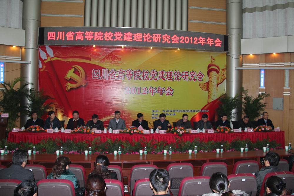 12月15日,四川省高等院校党建理论研究会2012年年会在西华大学四教报告厅举行。四川省高校党建理论研究会会长、四川大学党委书记杨泉明,四川省委党建办副主任、省党建研究会秘书长黄林,四川省高校党建理论研究会副秘书长、四川省教育厅副巡视员杨成林,省委宣传部宣传处副处长王军,四川省委教育工委、省教育厅组织干部处处长丁念友,四川省高校党建理论研究会副会长、四川师范大学党委书记高林远,研究会副会长、西南民族大学党委书记罗布江村,研究会副会长兼秘书长、四川大学党委常务副书记罗中枢,研究会副会长、电子科技大学党委副书记罗佳慧,研究会副会长、西南交通大学党委副书记何云庵,西华大学党委书记张小南,党委副书记、校长孙卫国出席会议并在主席台就座。
