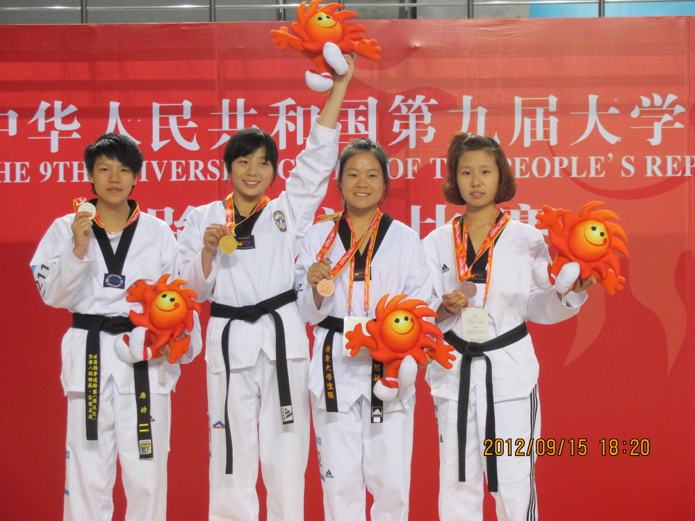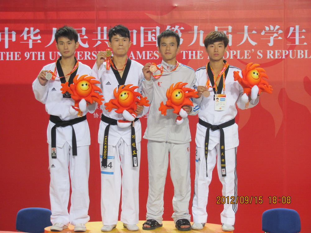| 近日,第九届全国大学生运动会在天津圆满落下帷幕。来自全国34个代表团共计6196名运动员和教练员参加了本届赛事。本届运动会共决出265块金牌,打破4项全国纪录和81项全国大运会纪录。这是一届精彩和高水平的体育盛会,参赛运动员不仅展示了当代大学生良好的竞技状态和水平,也体现了重在参与、顽强拼搏、奋勇争先的体育精神。 在本届大运会上,四川省代表团共计获得银牌1枚,铜牌6枚。受四川省教育厅体卫艺处的委托,由我校牵头组队的乒乓球、桥牌和跆拳道三支队伍在本次大赛中不畏强手,敢打敢拼,其优异的竞技水平与良好的精神面貌得到了与会人员的高度肯定与评价。 在四川代表团所获6枚铜牌中,跆拳道代表队夺得其中4枚,另外,还夺得6个第五名,女子团体总分第八名和男女团体总分第七名的优异成绩并荣获本届大学生运动会体育道德风尚奖。 来自我校人文学院2011级法学专业的富姗姗荣获女子55KG跆拳道铜牌,薄天祥荣获男子54KG跆拳道铜牌。来自我校管理学院2010级会计学专业的林菁荣获女子47KG跆拳道第五名,2011级工程管理专业的李哲荣获男子+84KG跆拳道第五名。 与此同时,全国高校体育工作座谈会在南开大学召开。南开大学校长龚克,教育部体卫艺司司长王登峰、副司长刘培俊,我校分管体育副校长何建平和体育学院院长胡志代表四川省高校出席了此次座谈会。座谈会上,与会代表围绕如何在新形势下进一步加强高等学校体育工作,加强高校高水平运动队建设,进一步完善大运会改革等方面,进行了深入的交流和探讨。