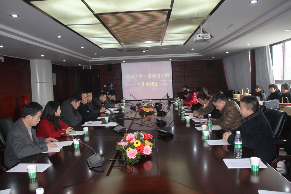 3月12日下午2:30,85级中文系校友、崇州市道明镇党委书记陈玲率道明镇副镇长、道明竹编协会会长、道明竹编非物质文化遗产传承人等一行13人来我校寻求道明竹编发展合作。座谈会在行政楼212会议室举行。副校长蔡汉军、地方合作与服务处、材料科学与工程学院、艺术学院、经济与贸易学院、人文学院等院部主要负责人和部分教授参加了座谈。地方合作与服务处处长王志刚主持座谈会。