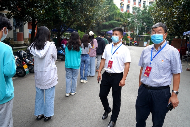 在西华苑北苑9栋楼下的核酸检测点,余孝其与前来参加核酸检测的离退休老同志亲切交流,感谢离退休老同志对学校疫情防控工作的支持、配合与理解,仔细询问他们的生活需求保障,并提醒相关工作部门要做实做细各项服务保障工作,优化服务流程,减少教职员工和上网课中小学生的排队等待时间,落实好关心关爱措施,为参检师生和一线核酸检测医护人员创造更加良好的环境。