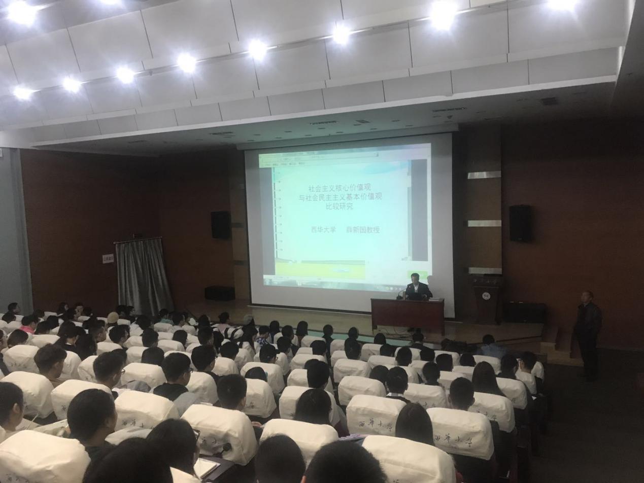 10月17日下午,马克思主义学院薛新国教授在图书馆报告二厅,为全校师生作了一场题为《社会主义核心价值观与社会民主主义基本价值观比较研究》的专题讲座。