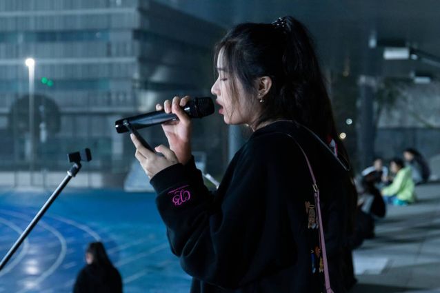 活动开展首日,同学们就被荧光棒围成的光圈吸引了过来。蒙蒙的细雨浇不灭同学们的热情,一首《青花瓷》作为简单开场,传播着中华文化的无穷魅力,一首《曹操》激起音乐节的高潮,诉说起中国文学的博大精深……曲罢,同学们也不忘拿起手中的拍器为演唱者加油打气。现场气氛热火朝天,大家情绪高涨。