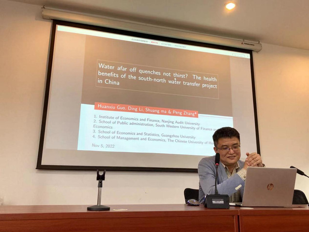11月7日下午,西南财经大学公共管理学院李丁教授应邀在一教4036做了主题为“Water afar off quenches not thirst? The health benefits of the south-north water transfer project in China”的学术报告。经济学院相关专业教师和研究生参加了学术报告会。报告会由经济学院商务管理系副主任何春燕主持。