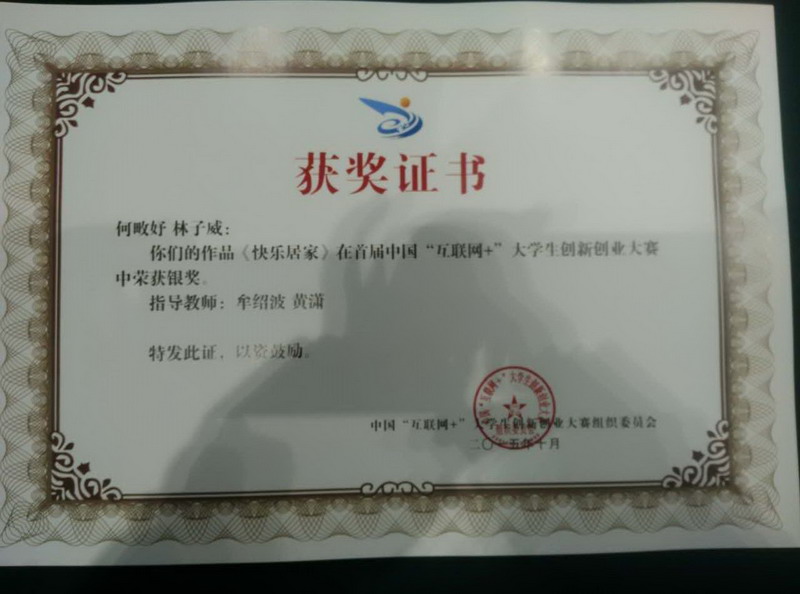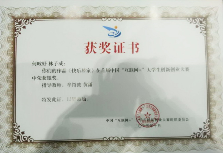 10月18日至21日,首届中国“互联网+”大学生创新创业大赛全国总决赛在吉林大学举行,来自全国各地各高校的300支优秀团队进行最后巅峰角逐,最终,由我校学生团队自主研发的“快乐居家App”项目跻身前列,摘获全国银奖。