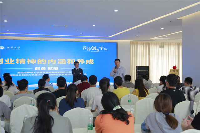 6月17日,由成都创新创业示范基地管委会与西华大学联合举办的菁蓉创客学院2017年首期培训班在菁蓉镇创新展览中心创课学堂举行。美国堪萨斯大学教育学院兼商学院杰出教授,澳大利亚维多利亚大学及Mitchell教育政策研究院教授、研究员赵勇分别做了以“创业精神的内涵及养成”和“创业与创新的关系”为题的两场专题讲座。西华大学党委书记边慧敏、西华大学创新创业学院特聘院长关成华、党总支书记刘浏、副院长王博及在校师生参加此次讲座。在谈到“创业精神的内涵及养成”时,赵教授从创业的优势、兴趣和价值三个要素入手,指出学生而言要培养自己发现问题的能力,也就是回答“why you,why now”的问题。在这个过程中,可以从“认知”、“情感”和“资源”三个角度去思考,也就是说“我擅长做什么”、“我喜欢做什么”和“我能做什么”三个问题。第一要认识自己的特长,反思自己到底能干什么,有没有这方面的潜质,能不能超越众人。第二了解周围的问题,对所处的环境有敏感性,能发现一些有价值的问题。创造性思维,就是以一种前人没想过的方式或者以更精确的行为来把事情继续优化。第三是解决你所发现问题的能力,好比我们都发现环境污染严重,但试想一下你能否解决。在谈到“创业与创新的关系”时,赵教授分析了创业动机在当下创业热潮的重要性,阐释了创业的英文单词“Entrepreneurship”的含义,指出创业必须要创新,结合本专业优势,发挥创造力。而所谓创造力,赵教授认为,创造力是在一个活动中不断修正现有方案以达到卓越。赵教授还认为,家庭、小学教育对学生创新能力的生成具有至关重要的作用,大学应立足学生特点,通过作品导向的方式,让学生成为卓越人才。赵教授通过许多生动的案例、详细的数据,进一步得出结论,指出创业与创新必须把握优势、保持激情、创造价值。
