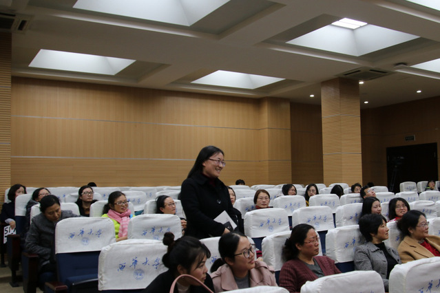 胡教授的讲解深入浅出,语言风趣幽默,举例子信手拈来。她常常走到座位之间,与老师们频频互动,现场气氛热烈。在最后的问答环节,胡教授对老师们的积极提问一一给出了细致的解答,至此讲座圆满结束。
