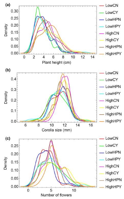 土壤水分和营养状况对西藏报春花性状密度曲线和组合花性状获得自然选择的影响