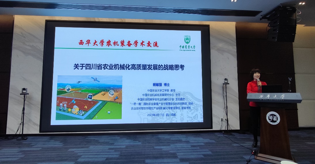 3月11日上午,中国农业大学工学院教授、中国农业机械化发展研究中心主任、西华大学“天府学者”特聘专家杨敏丽应邀为我校师生作了题为“关于四川省农业机械化高质量发展的战略思考”的学术报告。现代农业装备研究院、机械工程学院、马克思主义学院、国际经济与管理研究院、农业现代化与乡村振兴研究中心百余名师生参加,现代农业装备研究院院长王霜主持此次报告。