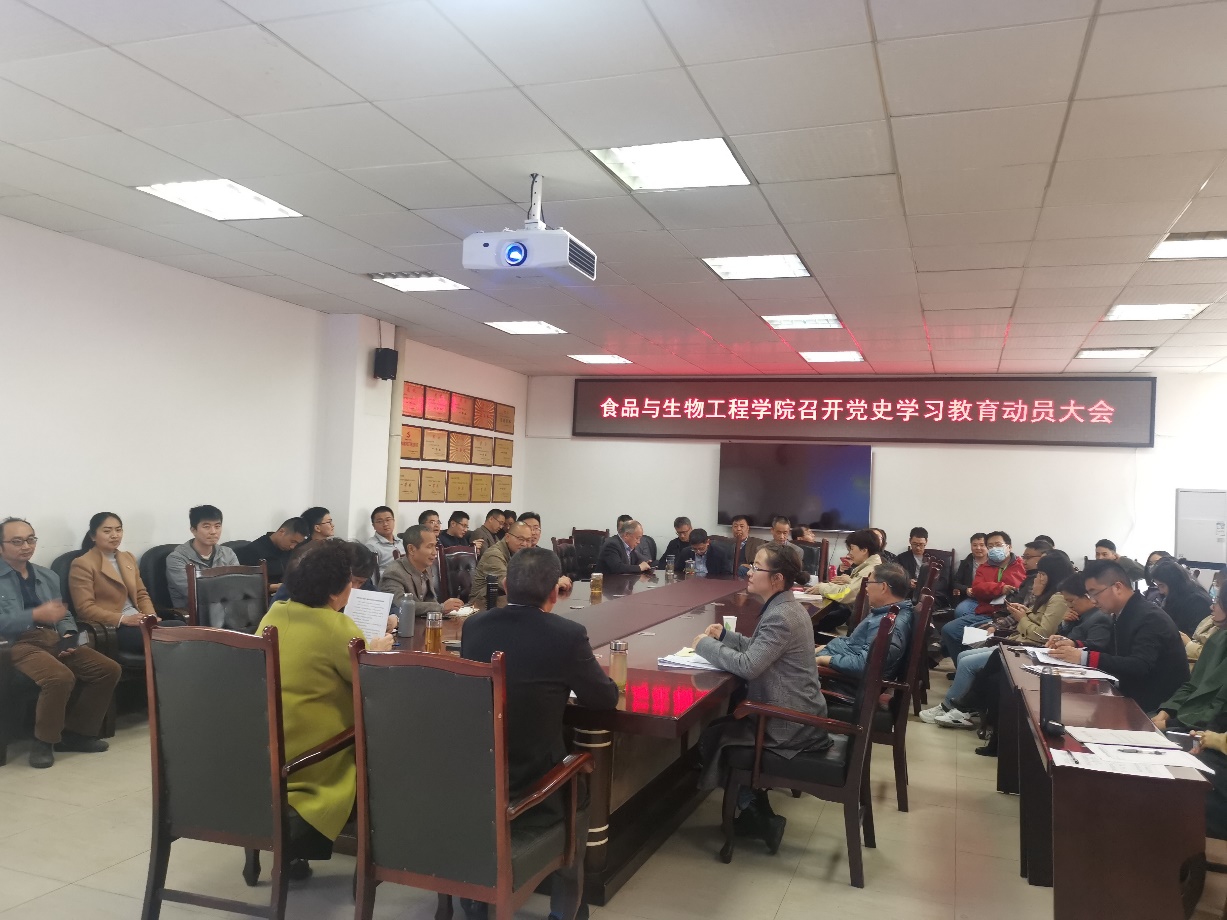 4月1日,食品与生物工程学院在5D-419召开全院党史学习教育动员大会,传达学习校党委书记余孝其在全校党史学习教育动员会上的讲话精神。会议由学院党委书记周彬儒主持。
