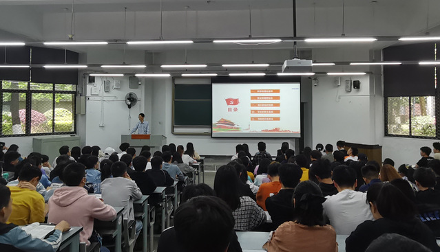 为全面贯彻落实习近平总书记关于教育的重要论述和习近平总书记在学校思想政治理论课教师座谈会上的重要讲话精神,按照《西华大学领导干部讲思想政治理论课实施方案》文件要求,4月25日下午,汽车与交通学院党委书记周华在6B-103教室开展了主题为“中国共产党为什么能”的思政课。学院党委副书记裴西宏,学生党总支书记王新兵,各学生党支部书记以及青年学生骨干153人参与了此次活动。