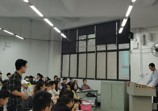 在随后的交流讨论环节中,2018级庄萍、王超然同学分别就“学院党委对新发展的党员有何要求与希望”及“2050年以后我们党又有怎样的目标与理想”提出问题。周华表示,青年党员应该牢记入党誓词,不忘初心,保持先进性和政治性,坚守理想信念,坚定共产主义的远大理想,在国家和人民需要的时候冲锋在前,为国家和人民奋斗终身。