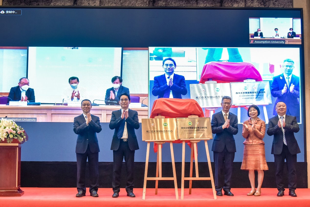 随后,现场举行了西华大学与易三仓大学共建“西华大学泰国曼谷易三仓校区”签约暨揭牌仪式。