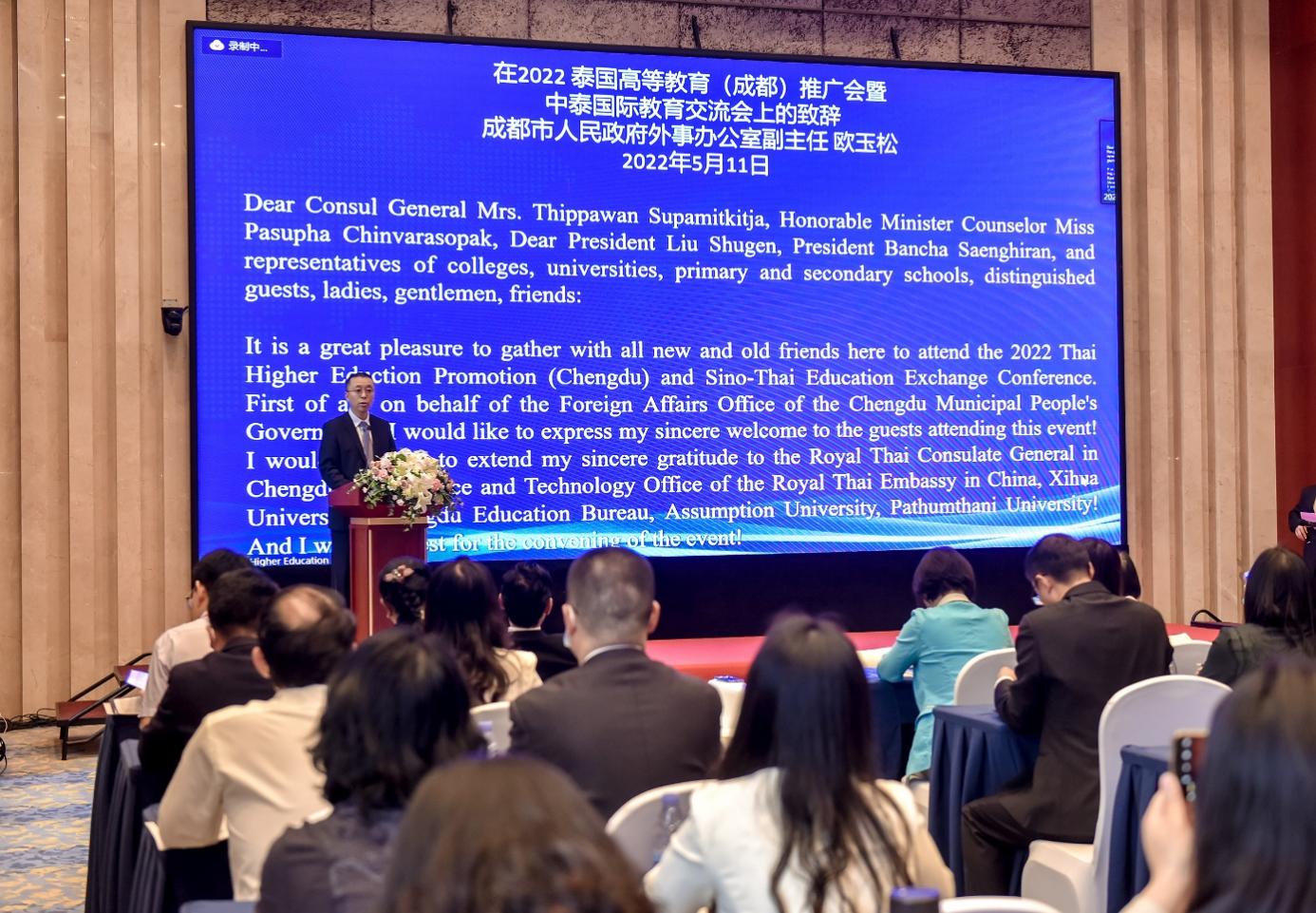 泰王国驻华大使馆科技处公使衔参赞陈善意女士、泰王国驻成都总领事馆总领事张淑贞女士、成都市人民政府外事办公室副主任欧玉松分别致辞,对西华大学与易三仓大学的深度合作给予了充分肯定并表示祝贺。
