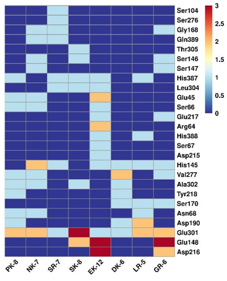 Figure 4.Active site statistics of eight umami peptides interactingwith the VFTD structural domain of the umami receptor T1R1/T1R3.