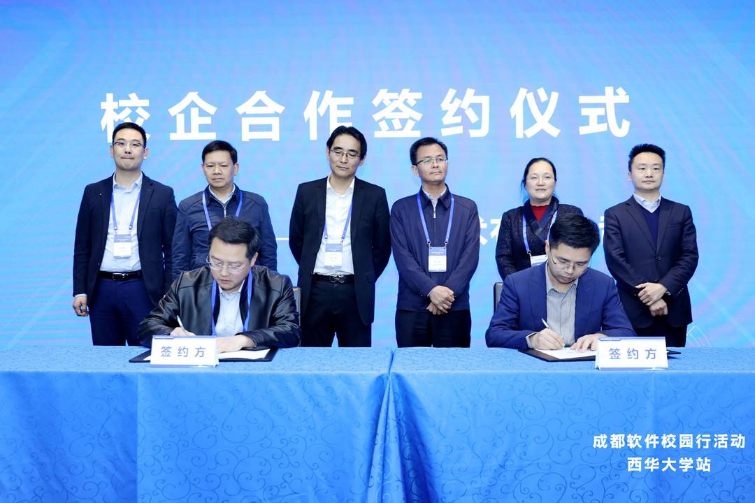 校企合作平台的搭建,将有效促进软件人才发展的良性循环,为高质量人才培养提供了动力。在校企合作签约环节,西华大学分别与华为技术有限公司、麒麟软件有限公司、北京润尼尔网络科技有限公司、四川省民航机场运行与控制工程技术研究中心、成都网安科技发展有限公司签约;成都信息工程大学分别与成都鼎桥通信技术有限公司、成都信达智胜科技有限公司签约;西南民族大学与北京人大金仓信息技术股份有限公司签约;成都工业学院与成都雅橙科技有限公司签约。