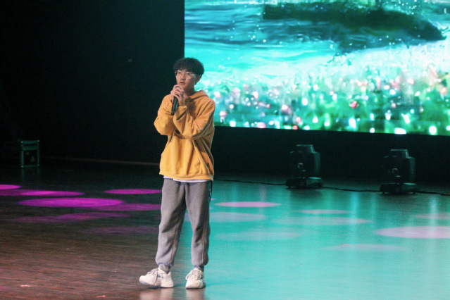 灯影下绽放炫彩青春,微笑间尽显美好年华。随着舞蹈协会开场舞的结束,场内气氛逐渐热烈,迎来了此次歌手大赛的开幕。歌声汇成海洋,飞扬嘹亮歌喉;舞台筑就高地,唱响时代旋律。经过半个月的激烈选拔,十二位选手成功晋级进入决赛。花有重开日,人无再少年,倪海洋带来的歌曲《唯一》让我们明白岁月不饶人,珍惜眼前人;怦然心动后的坚定,余佳遥、罗希倍贝共同演唱的《雨天》把在场观众的思绪带到了那场雨天中的思念;万里山河无恙,盛世烟火寻常,石紫馨表演的《如愿》展现了从古至今华夏儿女的辛勤拼搏与抗争都是为了青年如愿,人民如愿,国家如愿……